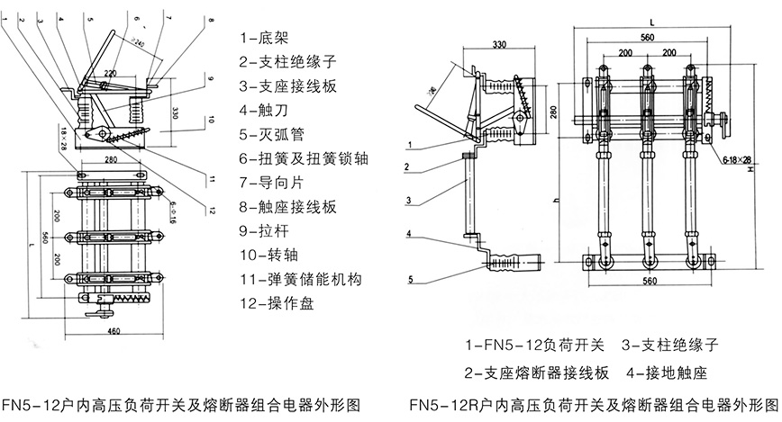 FN5-12型戶內(nèi)高壓負(fù)荷開關(guān)及熔斷器組合電器(以下簡稱負(fù)荷開關(guān))適用于交流50Hz、12kV的配電網(wǎng)絡(luò)中,作為開斷負(fù)荷電流及關(guān)合短路電流之用。帶有熔斷器的負(fù)荷開關(guān)可切斷短路電流,作保護(hù)開關(guān)之用。