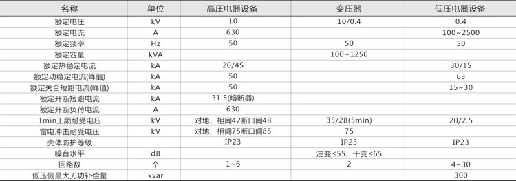 1. 本產(chǎn)品由高壓配電裝置、變壓器及低壓配電裝置聯(lián)接而成,分成三個(gè)功能隔室,即高壓室、變壓器室和低壓室,高、低壓室功能齊全,高壓側(cè)一次供電系統(tǒng),可布置成環(huán)網(wǎng)供電、終端供電、雙電源供電等多種供電方式,還可裝設(shè)高壓計(jì)量元件,滿足高壓計(jì)量的需求。變壓器室可選擇S9、SC以及其他系列低損耗油浸式變壓器或干式變壓器;低壓室根據(jù)用戶要求可采用面板或柜裝式結(jié)構(gòu)組成用戶所需供電方案,有動(dòng)力配電、照明配電、無功功率補(bǔ)償、電能計(jì)量和電量測(cè)量等多種功能,滿足用戶的不同要求。并方便用戶的供電管理和提高供電質(zhì)量。