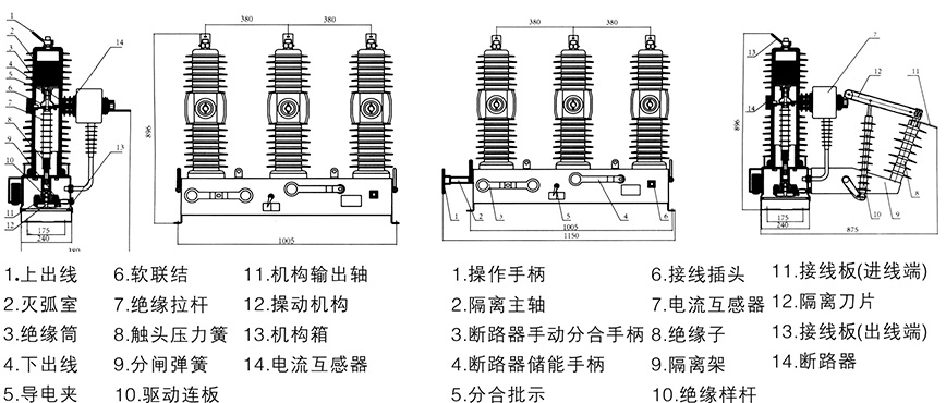 3、操作機(jī)構(gòu)為彈簧操作機(jī)構(gòu),有手動(dòng)和電動(dòng)兩種,需要時(shí)可加裝遙控操作裝置和躲避合閘涌流裝置。要求的外供電源功率不大于70W,易于配備后備電源。設(shè)計(jì)獨(dú)特的緩沖裝置,性能優(yōu)異,反彈小,噪聲低。